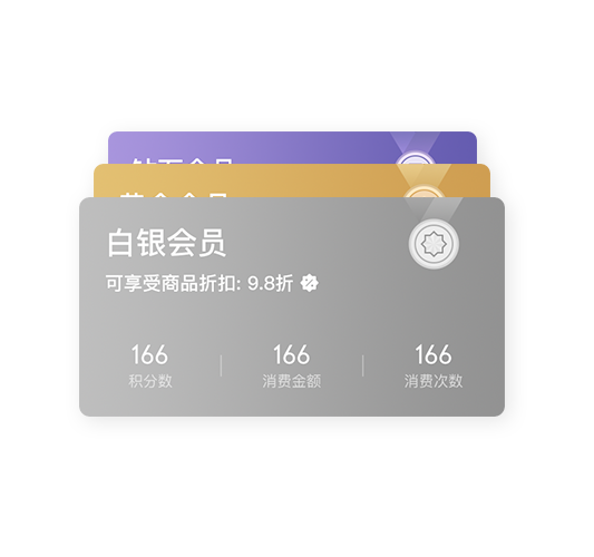 升级会员,尽享特权会员体系以积分,优惠券,储值消费方式锁客,基于用户画像进行活动消息分组推送,实现会员客户的精准化管理